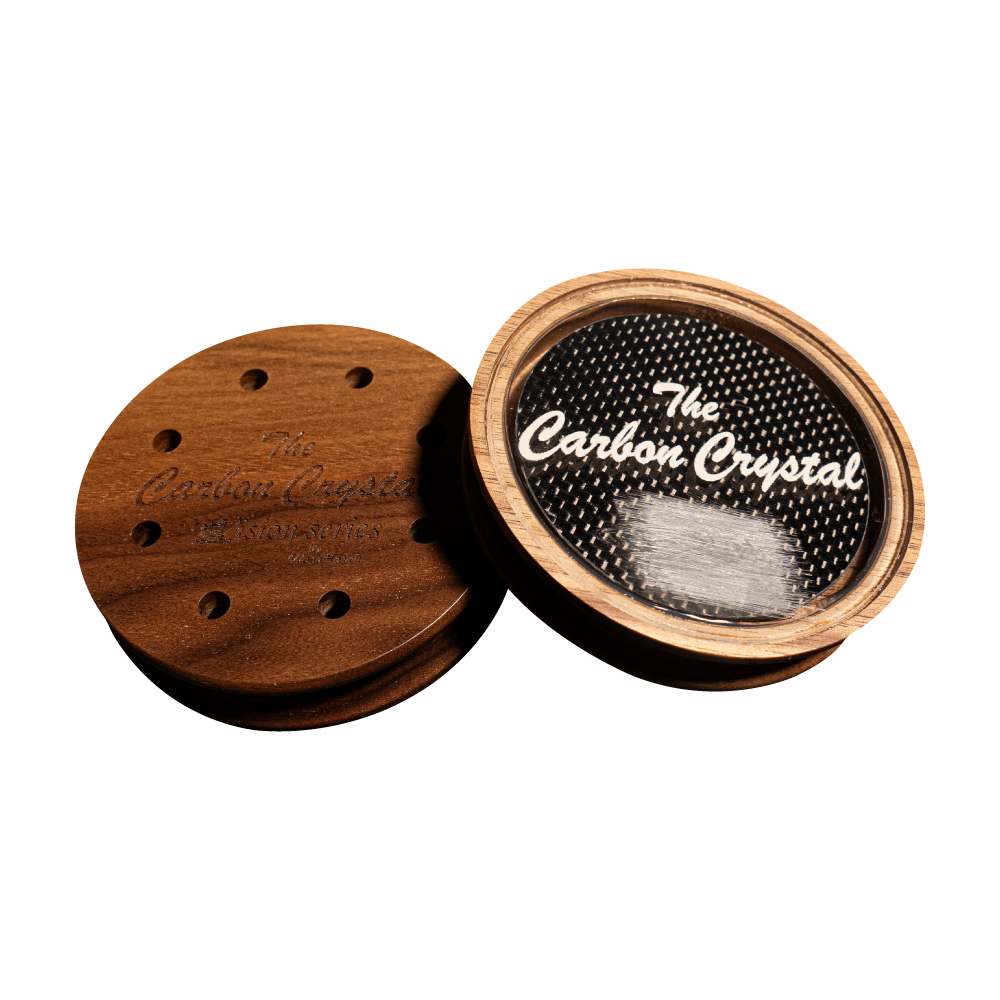 WoodHaven Pot Turkey Calls have been leaders in sound quality for over a decade. The Carbon Crystal by WoodHaven is made of American walnut with a pure-crystal calling surface and a carbon-fiber resonator for a more authentic hen sound. Carbon-fiber resonator isn’t damaged from temperature or moisture. The Carbon Crystal comes with three strikers – laminated flare-tip, hardwood, and cutt and cackle – conditioning stone, and surface-saver lid.