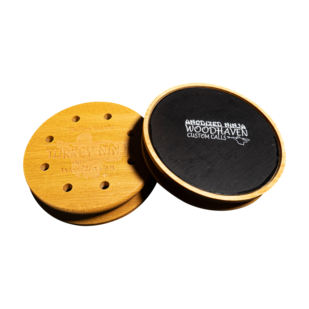 Realism, Realism, Realism…..this is the key in every call we design. The new “Anodized Ninja” pot call has all the great attributes of a great friction call our customers have come to expect from WoodHaven. The “Anodized Ninja” is built with a YellowHeart pot with a treated black anodized aluminum surface which is extremely user friendly. This “Anodized Ninja” is designed to call soft, but also has the ability to get extremely loud. The “Anodized Ninja” has the ability to produce high-pitched yelps and cutts to really reach out and cover a lot of ground when calling. The “Anodized Ninja” comes with the new YellowHeart “Ninja Stick” striker as well as our hickory striker. The new “Anodized Ninja” is a killer call! If you’re looking for a new pot call, check out the “Anodized Ninja” and you will soon realize why we’re so excited about this new call. It is Realism UnLeashed!
