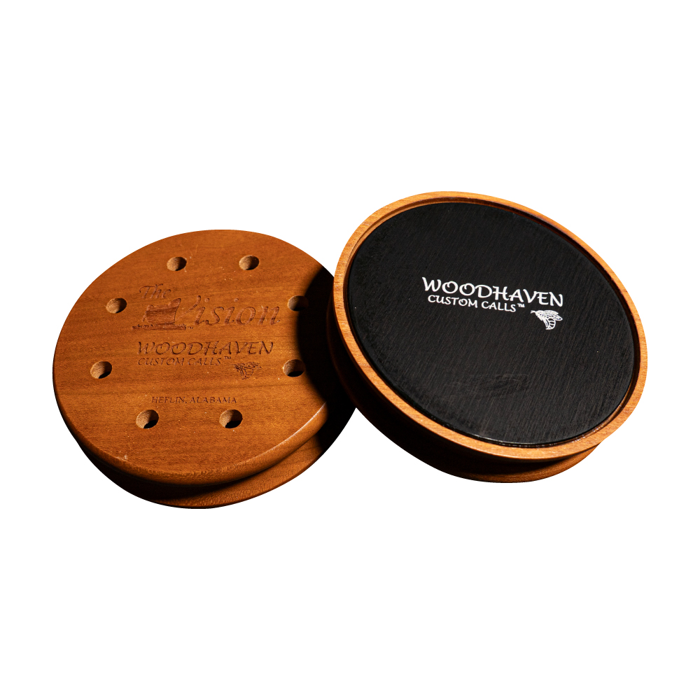 The powder coated, anodized aluminum and the fused crystal offer two more powerhouse options to the WoodHaven Calls line! Tone and realism is unsurpassed with the famous WoodHaven Calls’, high front end and kees and those powerful back ends but what we found was a way to add the very best mid ranges in any yelps from any call ever with the Vision. Stroke for stroke, yelp for yelp, simply the best!—Mike Pentecost.